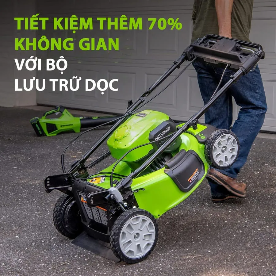 BẢO DƯỠNG MIỄN PHÍ – Máy cắt cỏ tự hành này hầu như không cần bảo trì, không dùng gas, không dầu và không có khí thải. Khởi động bằng nút nhấn, vận hành êm ái và mang lại hiệu suất giống như xăng. Sử dụng ít không gian hơn tới 70% trong nhà để xe của bạn với kho lưu trữ dọc.