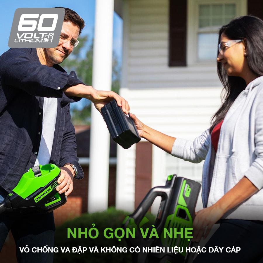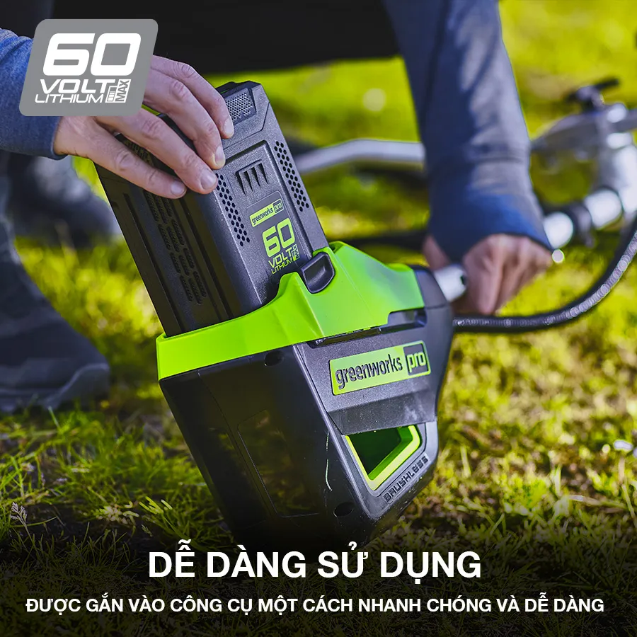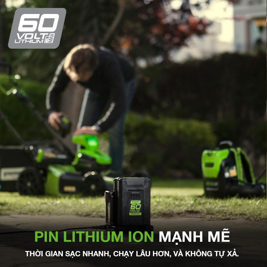 Pin Greenworks 60V từ 2Ah đến 6Ah mạnh mẽ rất linh hoạt và tương thích với nhiều công cụ Greenworks khác trong lĩnh vực sân vườn và nhà xưởng